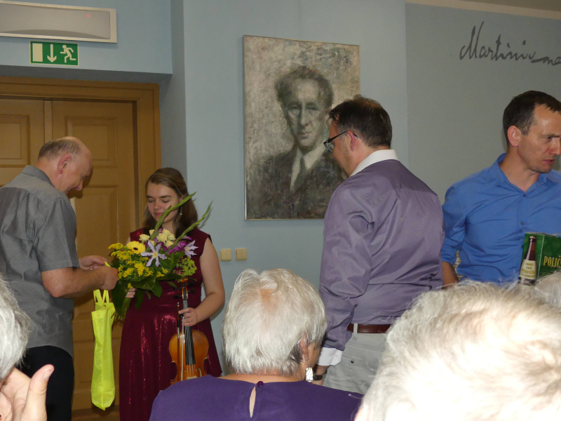 Doc. Monika Holá - úvodní přednáška, Miriam Kašparová - housle, Petr Jiříček - klavír
